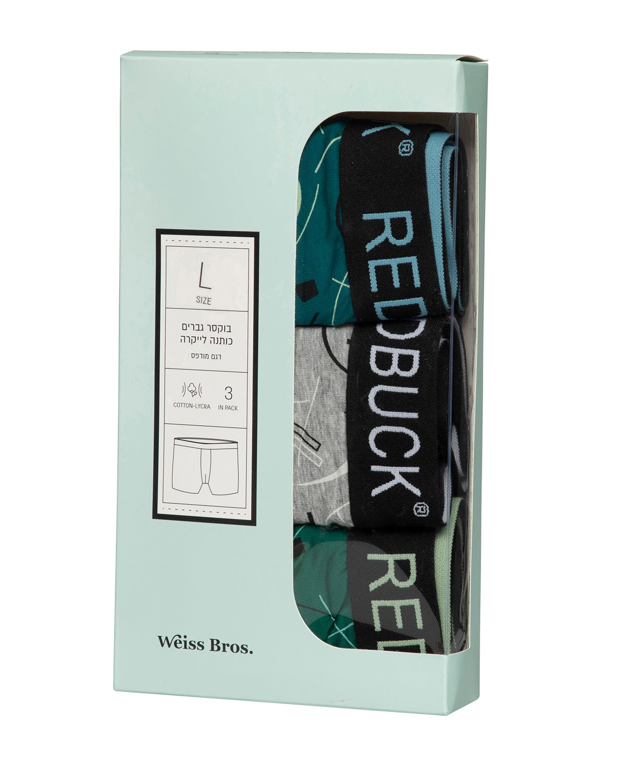 בוקסר גבר מודפס כותנה לייקרה - 3 במארז