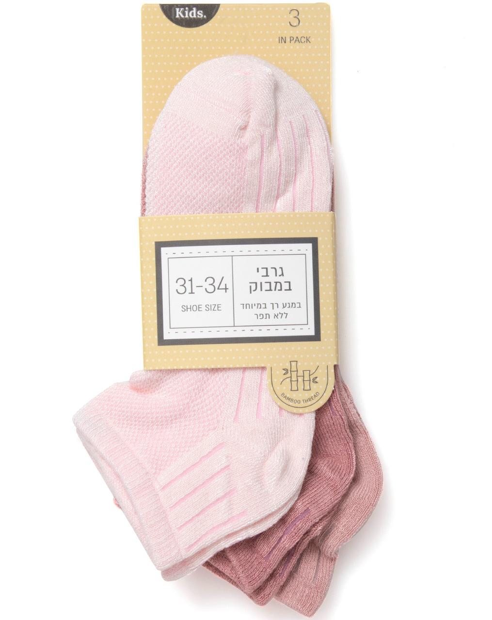 גרבי קרסול מבמבוק לילדות ללא תפר - 3 זוגות