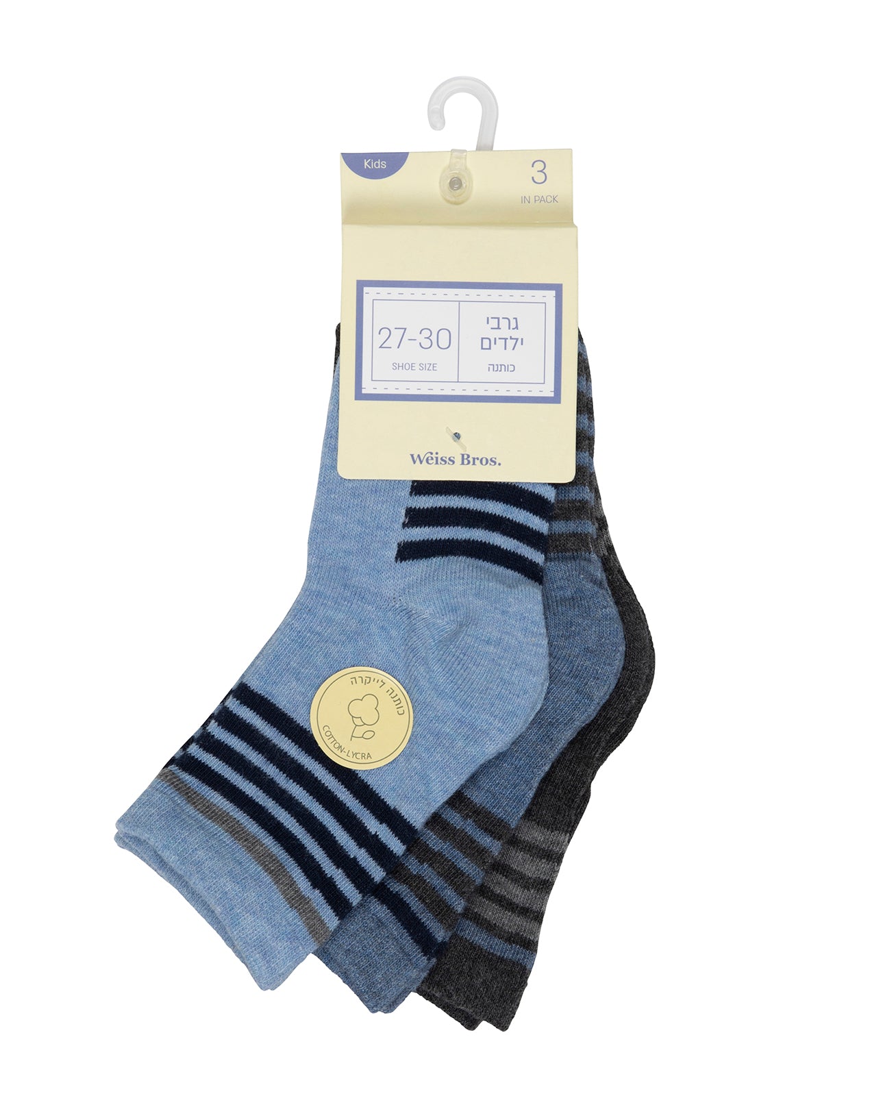 גרבי ילדים מכותנה צבעוני - 3 במארז