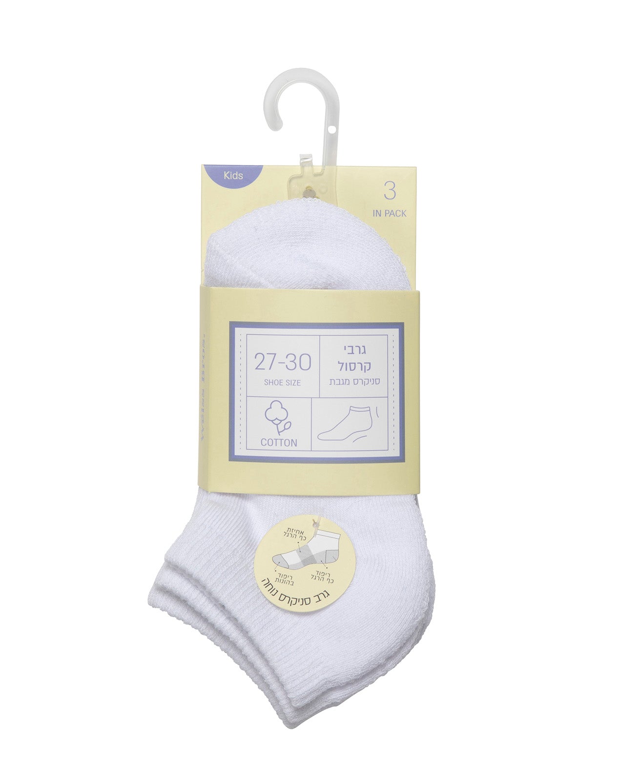 גרבי סניקרס ספורט מגבת מכותנה לבן לילדים - 3 במארז