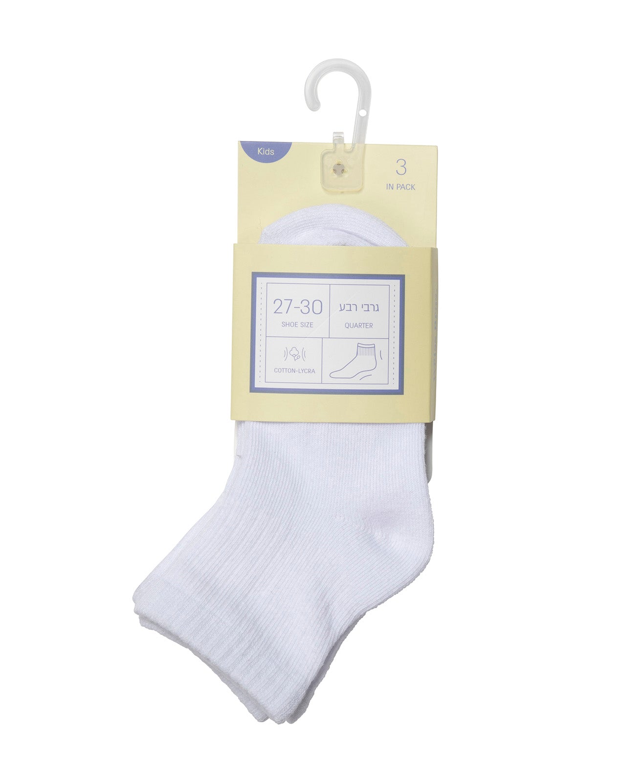 אנזו- גרבי רבע לילדים לבן - 3 במארז