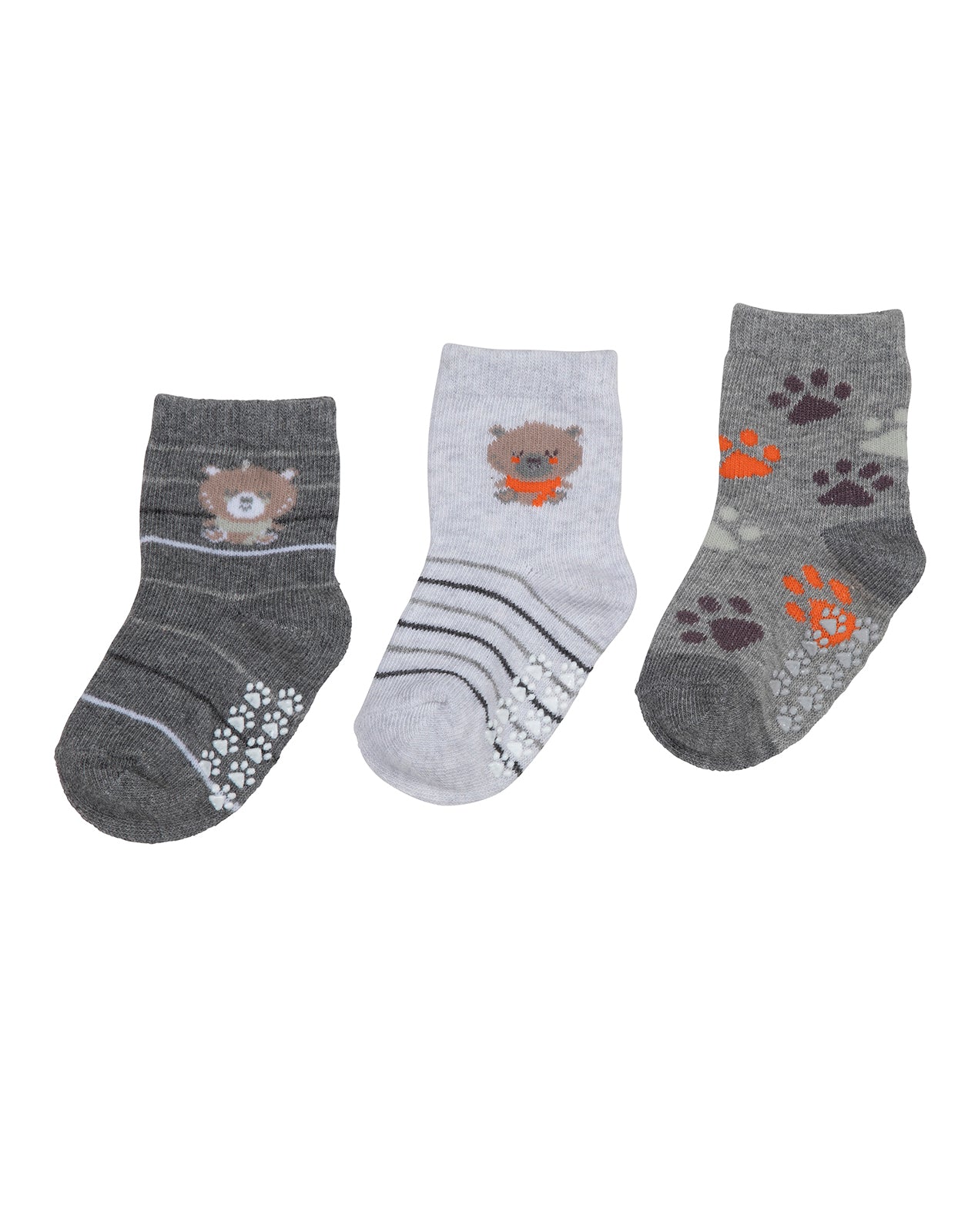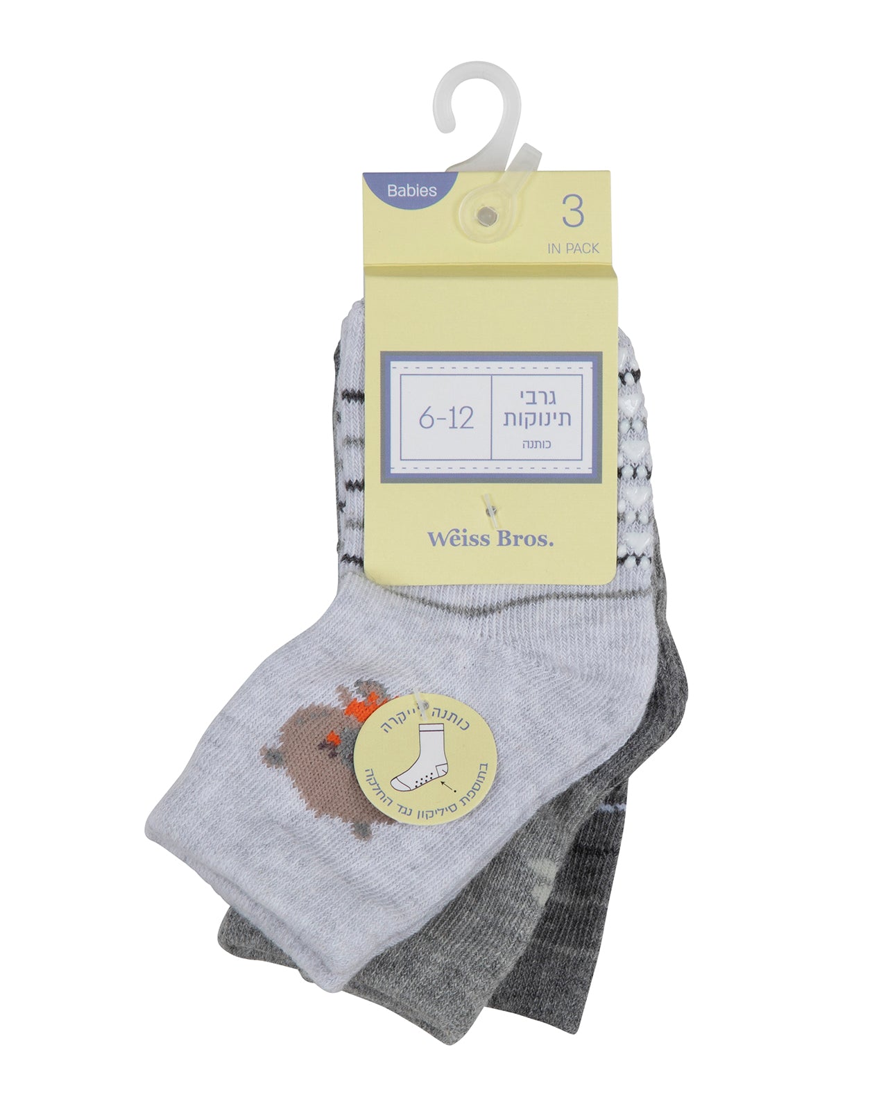 גרבי תינוקות מבד כותנה עם תוספת של סיליקון בתחתית למניעת החלקה - 3 זוגות במארז