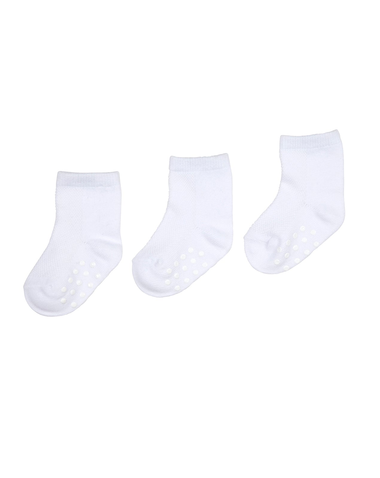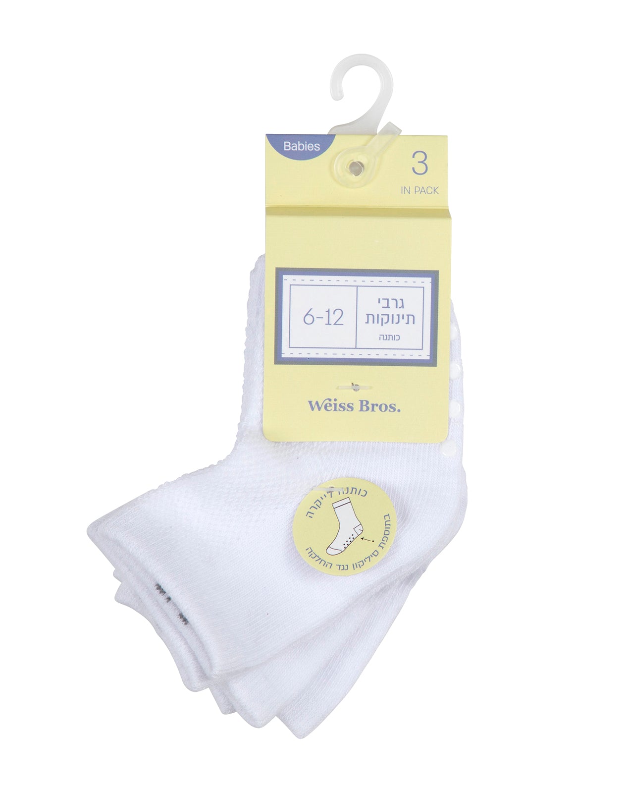 גרבי תינוקות כותנה לבן בתוספת סיליקון נגד החלקה - 3 במארז
