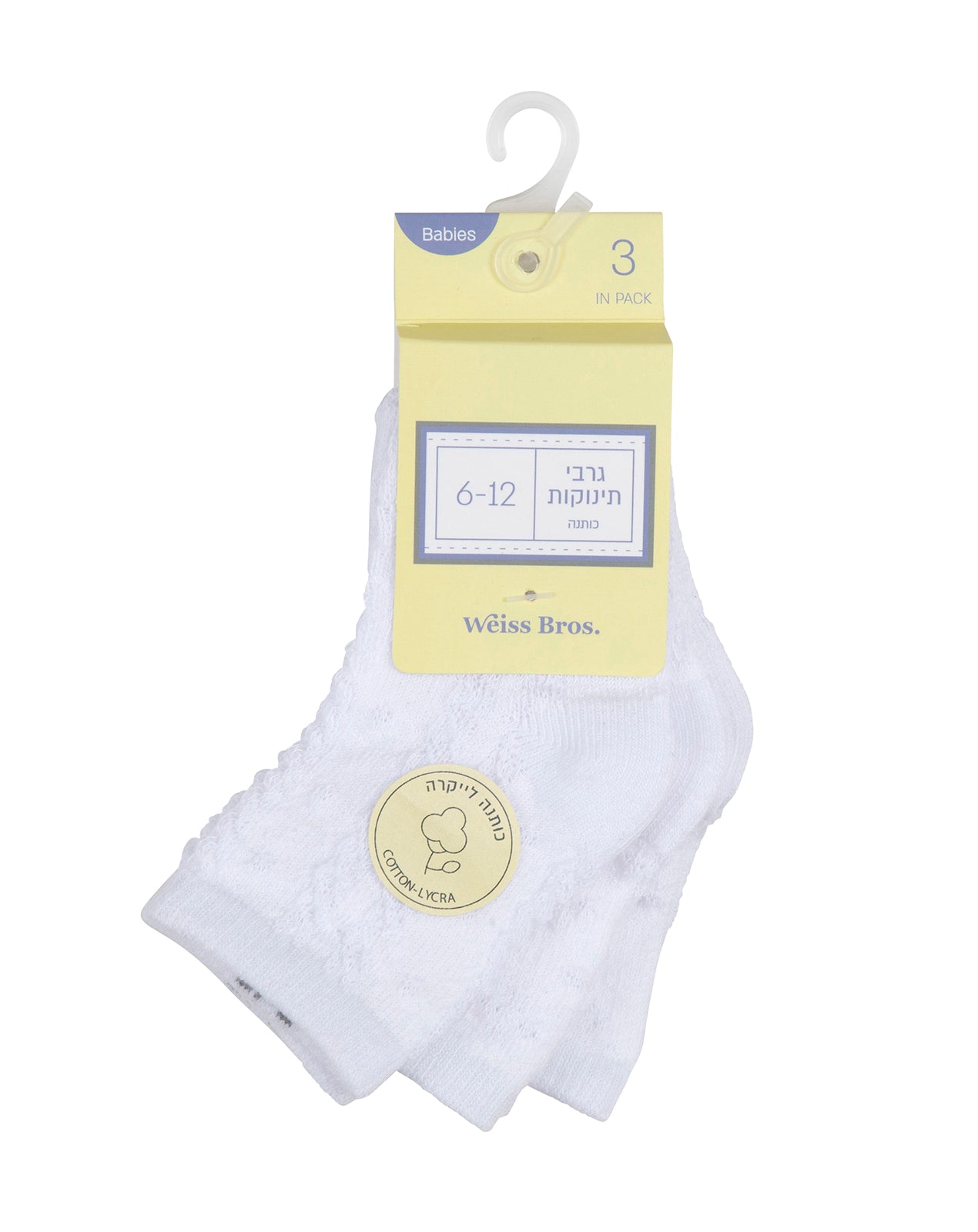 גרבי תינוקות מכותנה לבן - 3 זוגות במארז