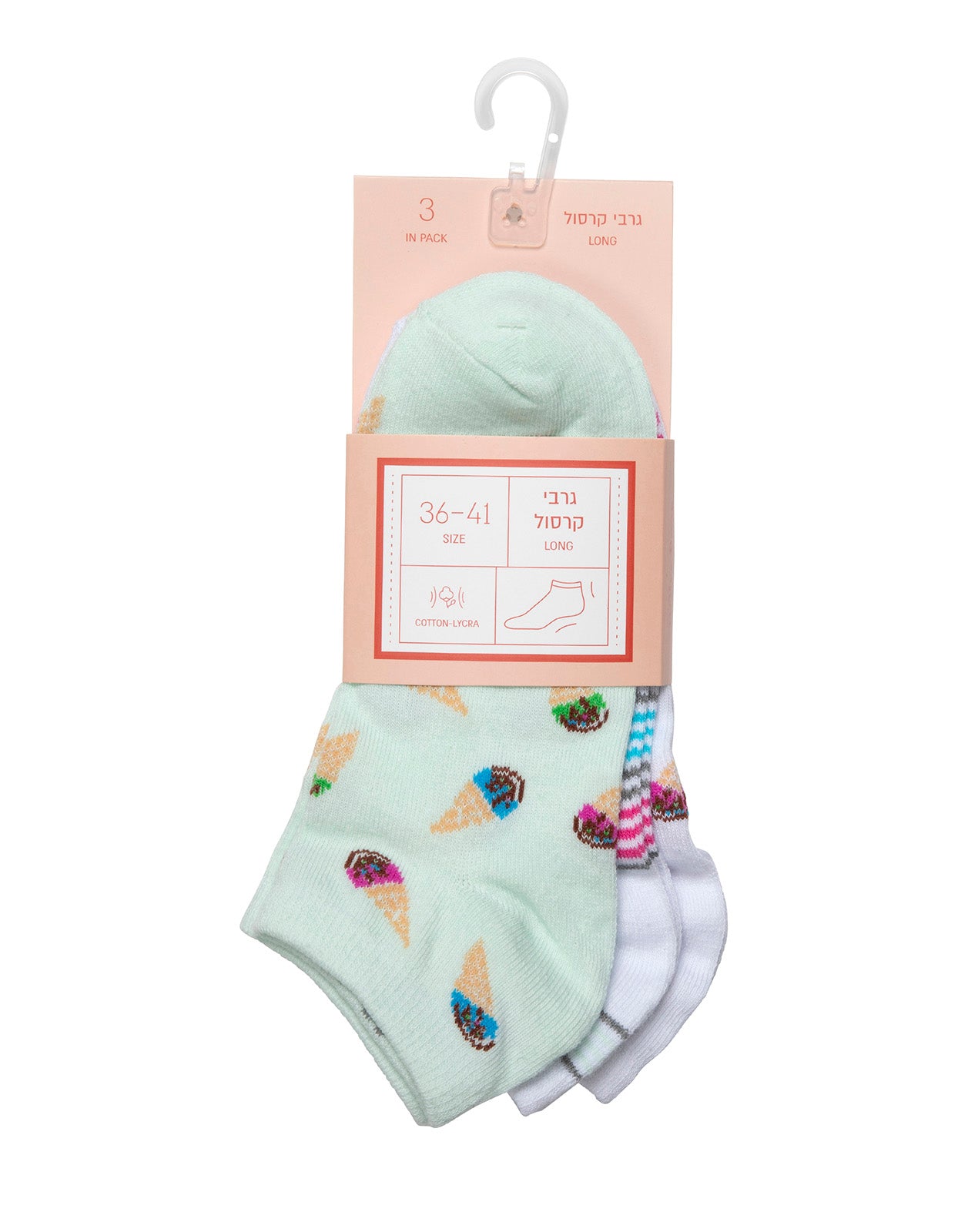 גרבי קרסול נשים כותנה - 3 זוגות