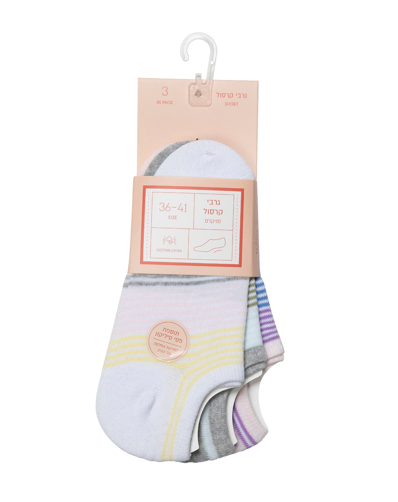 (B)גרבי קרסול סניקרס לנשים צבעוני - 3 זוגות