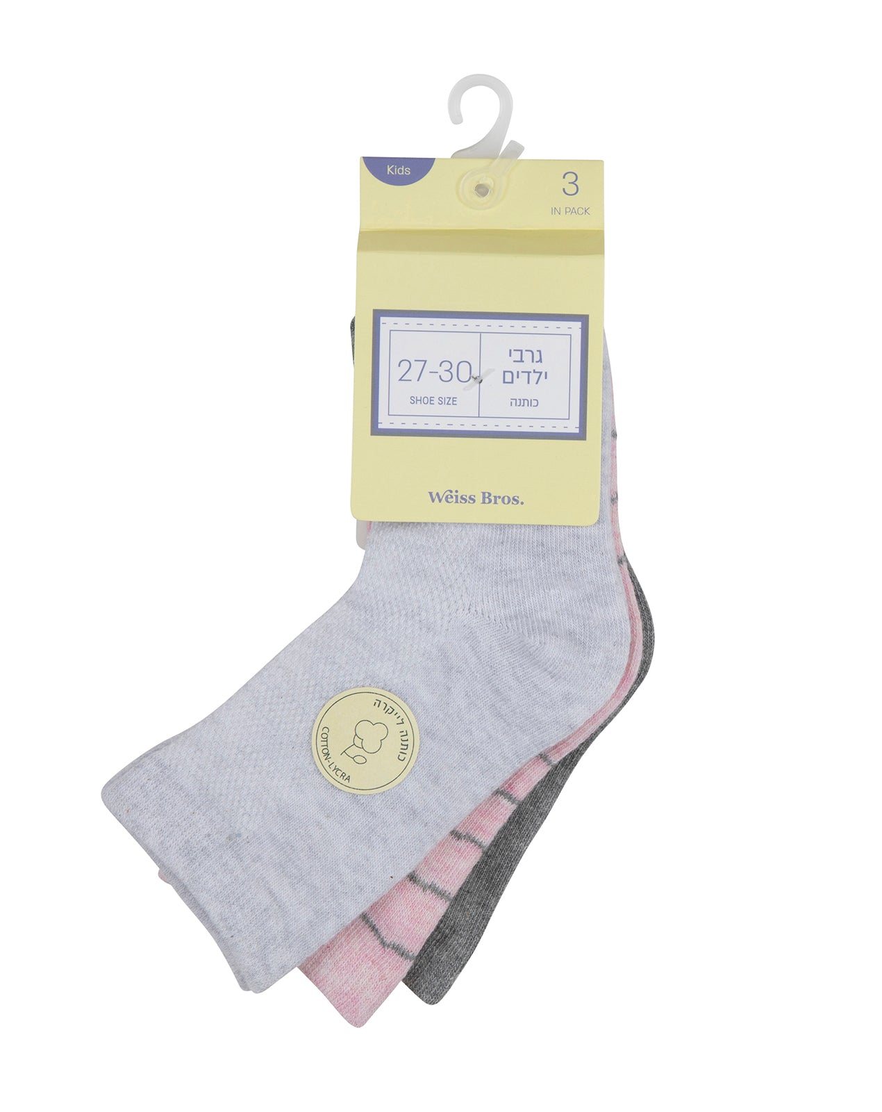 גרבי ילדות מכותנה צבעוני - 3 במארז